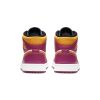 This offering of the mid-top Designer Brand 1 features a White leather base with Magenta overlays and matching rubber outsole. Other details include cracked Yellow leather collars and Swooshes with contrast stitching throughout and “Familia” printed on the lateral forefoot. A pair of Black wax laces and liners atop a White midsole completes the design.