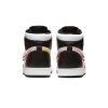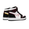 The Designer Brand 1 High “Defiant” is a unique colorway of the iconic model featuring “unstitched” Swooshes on the lateral sides. The eye-catching construction features a black and white leather upper with red contrast stitching throughout, including for the deconstructed stitching that makes the shape of the Swoosh, intended to appear as if the leather Swoosh was cut off. Intact yellow leather Swooshes are found on each medial side. A black leather tongue and Designer Brand “wings” logo patches complete the distinct colorway.