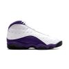 Emerging in July 2019 as part of a ‘Rivals’ series, the Designer Brand 13 Retro ‘Lakers’ sneaker looks back to the 1990-91 NBA Finals when Michael Designer Brand won his first championship ring against Los Angeles. This AJ13 sports a perforated leather upper with Lakers inspired colors incorporated on the heel, front-facing Jumpman and mudguard. Hints of gold appear on the outsole, between the herringbone pods.