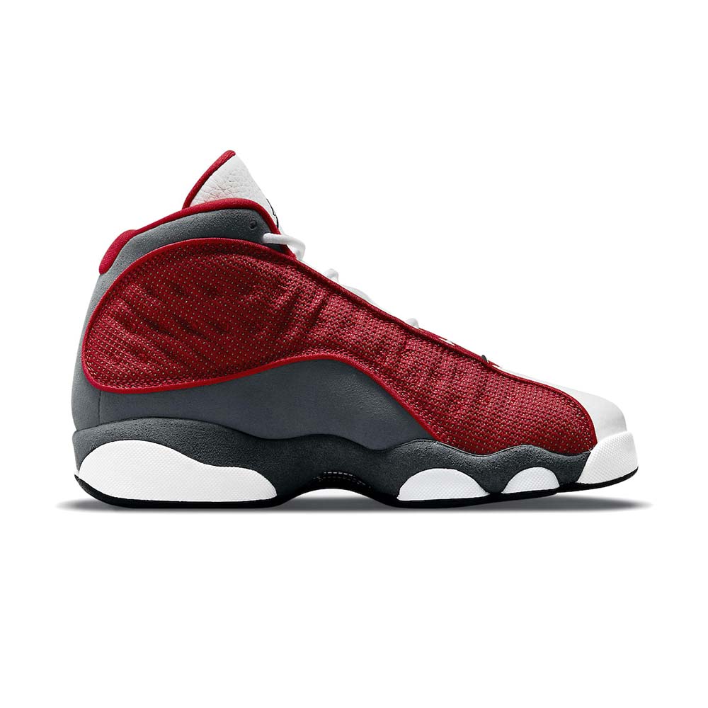 Dressed in a Gym Red, Flint Grey, White, and Black color scheme.This colorway was created initially for Kevin Martin during his days with Houston Rockets. The Designer Brand 13 “Red Flint” looks similar to Kevin Martin’s Designer Brand 13 PE featuring White leather on the toe, Red reflective mesh on the side panels and Flint Grey suede on the mudguards and heels.