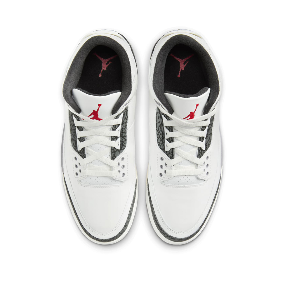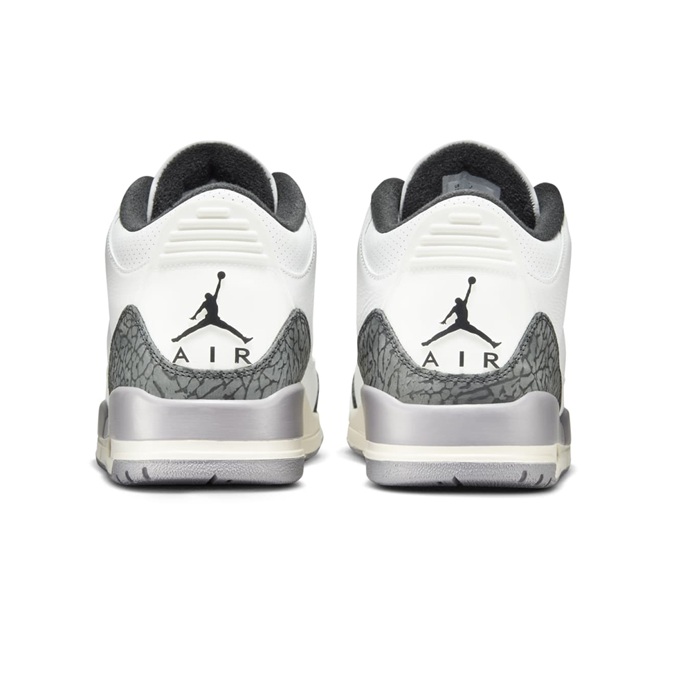 The Designer Brand 3 Retro ‘Cement Grey’ is a classic re-release featuring a clean white leather upper contrasted with iconic grey elephant print overlays. Pops of Fire Red on the Jumpman logo and heel tab add a vibrant touch. This timeless design, built on the innovative Air cushioning system, offers both style and comfort, making it a must-have for sneaker enthusiasts.