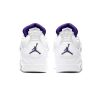 The Designer Brand 4 “Metallic Pack – Purple” one of four special edition colorways of the iconic model released for summer 2020. Inspired by the original “Metallic” colorways of the Designer Brand 1, the white and metallic-colored scheme is translated to four editions of the Designer Brand 4, including red, orange, green, and purple. Each colorway was released in specific regions of the world, with the US receiving this purple version. The construction features a full-grain leather upper with a metallic purple finish on the TPU lace eyelets and heel Jumpman logo. A matching purple hue is found on the inner lining, tongue logo, and visible Air unit. The “Metallic Purple” Designer Brand 4 released on May 20, 2020.