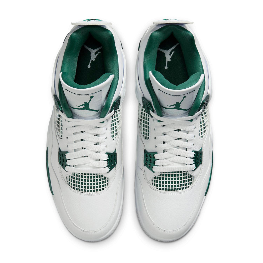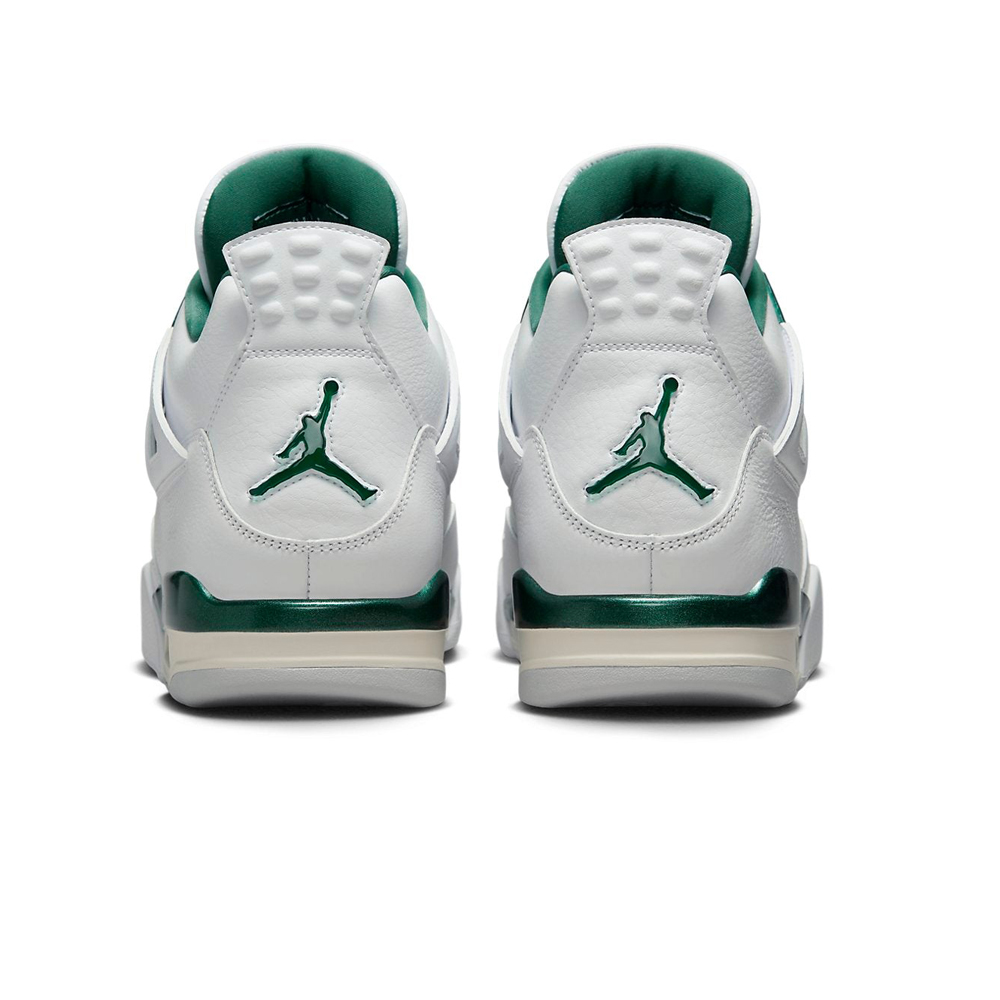The Designer Brand 4 Retro ‘Oxidized Green’ is one of the most anticipated sneaker releases of the Summer/Fall 2024 season. Pairing a clean white and sail with an attractive tint of green, this shoe features a crisp white leather upper, tonal quarter panel netting, and grey molded eyelets. Contrasting green accents adorn the support wings and back tab, marked with embossed Jumpman branding. An exposed Air-sole heel unit provides soft cushioning.