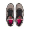 The Designer Brand 4 Retro ‘Taupe Haze’ presents an understated colorway of Tinker Hatfield’s 1989 design. A dark taupe finish is applied to the upper, constructed from a blend of textured suede with cracked leather on the collar, tongue and mudguard. Contrasting black hits land on the laces, plastic wings and heel tab, the latter marked with an embossed Jumpman logo. A second Jumpman icon is rendered in Infrared on the tongue tag, matching the interior lining of the tongue. Lightweight cushioning is provided by a two-tone PU midsole, housing a visible Air unit in the heel and encapsulated Air in the forefoot.