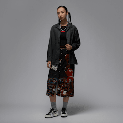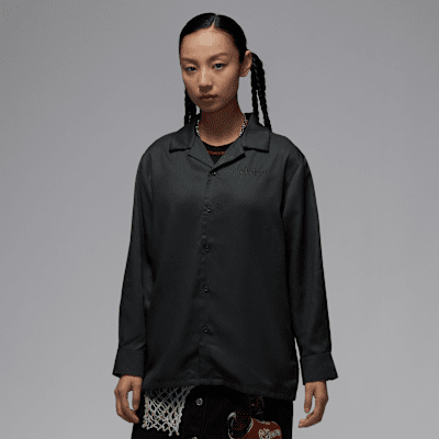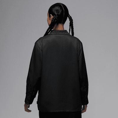 Business in the front. Designer Brand in the back. Lightweight twill fabric gives this flowy button-up top a soft feel and subtle drape. Dropped shoulders, longer sleeves and an oversized fit put a modern twist on a classic silhouette.