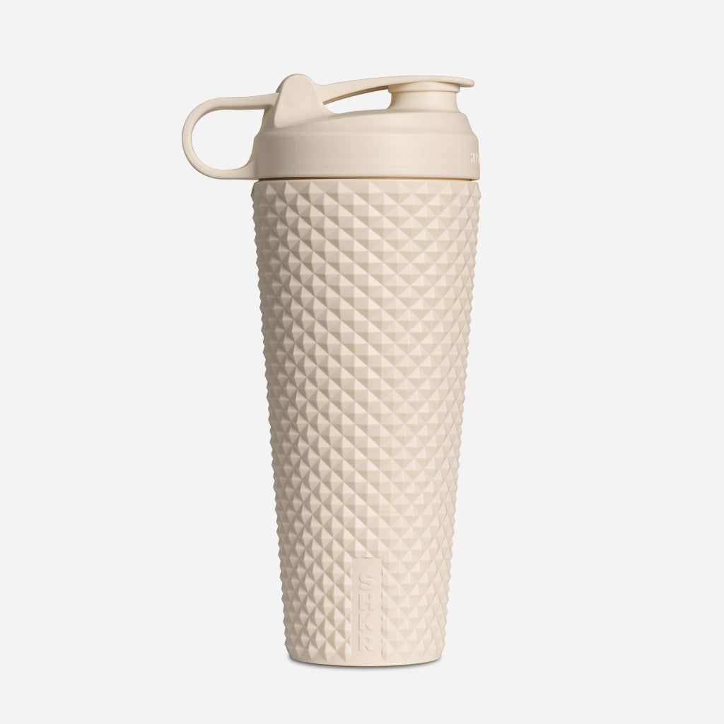 The Studded SHKR holds 24oz and is double walled to reduce sweat and add insulation for your liquids. This shaker bottle comes with a Pro Lid. Tumbler Lid. and Straw. The included SHKR grate allows you to easily mix supplements into your water. The Studded SHKR is cup holder compatible. has a silicone base to protect your surfaces. and is BPA Free.