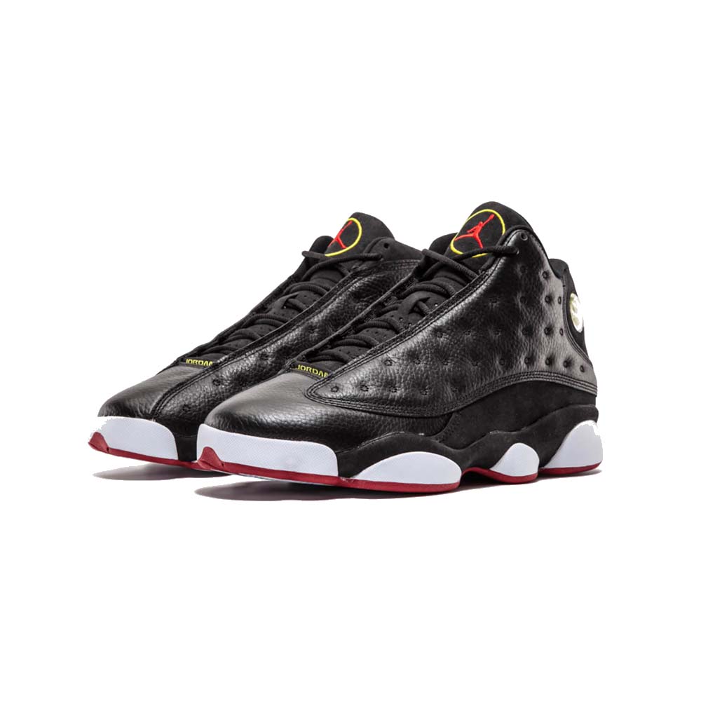 The 2011 edition of the Designer Brand 13 Retro ‘Playoff’ represents the first ever reissue of the classic colorway, worn by Michael Designer Brand during the ’98 NBA postseason. The mid-top is clad in black synthetic suede, overlaid with tumbled black leather on the toe and quilted side panels. The Chicago-inspired colorway is completed with an outsole rendered in white and Varsity Red.