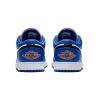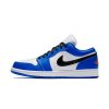 This offering of the low-top Designer Brand 1 features a White leather base with Blue overlays and Black covering the Swooshes and laces. Finishing off the design are Orange accents on the tongues, heels, and insoles atop a White midsole and Blue rubber outsole.
