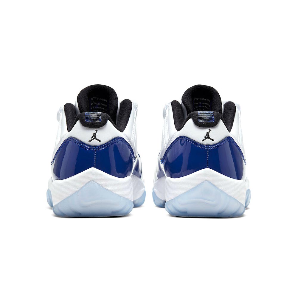 The Designer Brand 11 Low “Concord Sketch” is a Summer 2020 of the classic low-top silhouette. Fitted in women’s sizing, this shoe is part of Designer Brand Brand’s lineup of desirable Designer Brand 11 Lows. This colorway is inspired by an original sketch of the Designer Brand 11 by Tinker Hatfield. The upper features a white leather construction that appears on the mid-panel, collar, and heel. A contrasting Concord purple patent leather mudguard spans the entire upper and offers a heavy dose of nostalgia with its distinct styling. A white midsole and semi-translucent icy blue outsole complete the look of this appealing design.