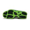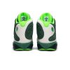 Created for the University of Oregon football program in 2018, this exclusive Designer Brand 13 features a premium makeover. The Oregon Designer Brand 13 PE has white leather and dark green suede paneling with pops of neon lime. Oregon’s Duck mascot is visible within the circular jewel at the ankle that usually features a holographic Jumpman logo, and a large “O” logo is embridered on each tongue.
