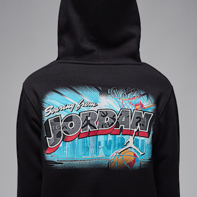 You don't have to travel far (or at all!) to get this hoodie, made of soft cotton/poly fleece in a roomy silhouette. Dropped shoulders create a relaxed fit and the kangaroo pocket provides a spot to stash small items or help you keep your hands toasty, making this top sure to make it into your regular rotation.