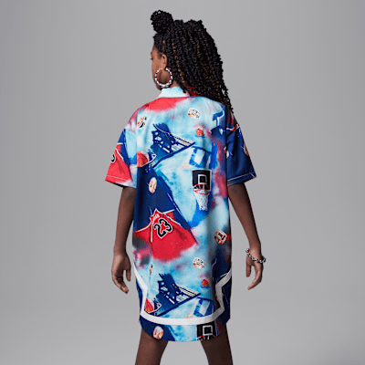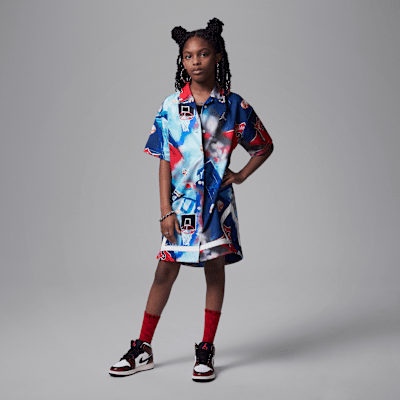 Laid-back and easy, this shirt dress is full of summery vibes. It's made of woven poly fabric containing recycled fibers and has added stretch for freedom of movement. The button-front placket provides versatile styling options and dropped shoulders relax the fit.