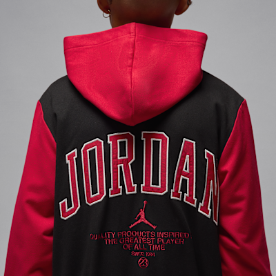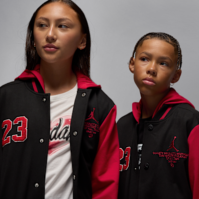Featuring embroidered detailing, this bomber jacket is one of the quality products we produce inspired by the the greatest player of all time, number 23, Michael Designer Brand . It's made of poly knit jersey with a smooth outside, soft inside, and added stretch for freedom of movement. The roomy cut and snap-front closure make layering easy, pockets provide spots to stash small items like keys or cash, and the cozy hood creates a layered look.