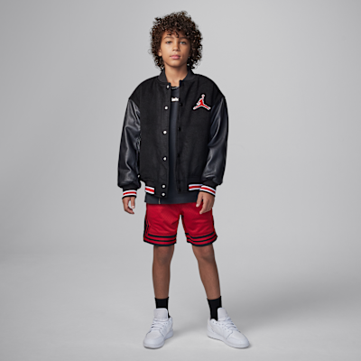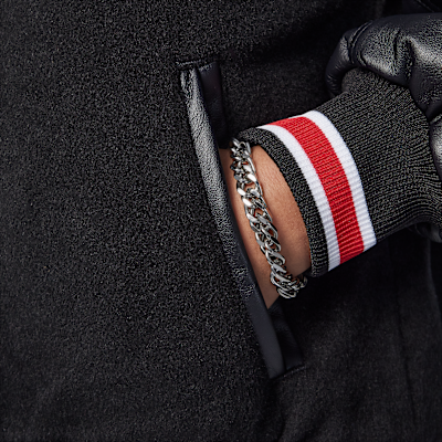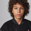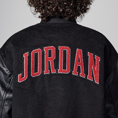 Rep your spot on the Team of Flight in this varsity jacket, which features patch applique detailing. The main body is made of soft felted poly knit that feels smooth and the sleeves are made of faux leather. It has a roomy cut with a snap-front closure making layering easy. Dropped shoulders create a relaxed fit and pockets at the sides (as well as a handy interior pocket) provide spots to stash small items.