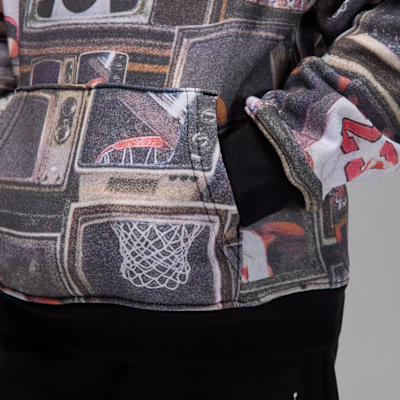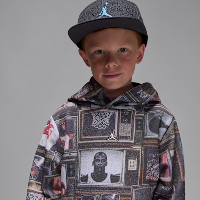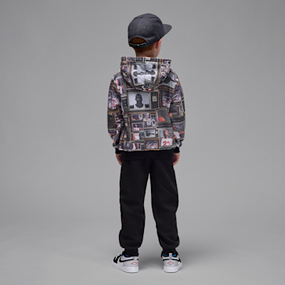 Effortlessly dress smaller ballers in this 2-piece set made of cotton/poly fleece that has a smooth outside and a soft, brushed inside. The cozy, graphic hoodie has a roomy cut that makes it easy to layer. The pants have a stretch waistband for a comfy fit, with tapered legs for a secure feel.