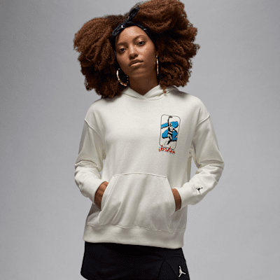 Cut loose and designed to feel relaxed, this French terry hoodie channels serious retro energy with graphics that throw it back to MJ’s rookie year.