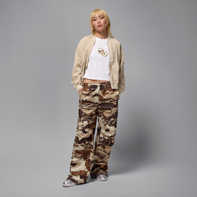 Lightweight, water-repellent twill fabric keeps these mid-rise pants feeling smooth and crisp. A loose fit grounds your look in laid-back comfort while darts at the knees, angled design lines and adjustable bungees at the hem add subtle style.