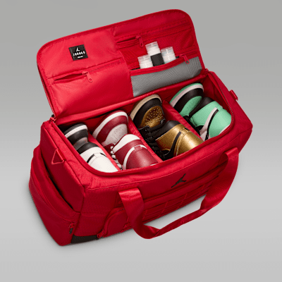This duffel is the ultimate bag for any sneakerhead. It's made of CORDURA® fabric, which is resistant to abrasions, tears, and scuffs, with a water-repellent finish to help keep your belongings safe and dry. Organizational pockets inside the front compartment and top flap closure help secure smaller items and toiletries. The zippered main compartment is spacious, and has adjustable, removable padded dividers to help keep your sneakers protected during your travels. A vented packing cube with zip around closure and a handle is included for when you want to bring just one extra pair of kicks, and the handles and removable strap provide versatile carry and wear options.