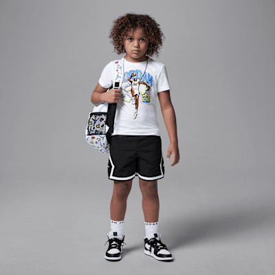 Kids can get digital in this tee, made of cotton/poly jersey in the timeless short sleeve silhouette with a regular fit so they can game at the playground, or in their chair, comfortably. Style with the Designer Brand Customized Air Flame Shorts for a coordinated look.