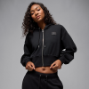 With heavyweight French terry fabric and a cropped silhouette, this roomy hoodie is big on comfort and style. A smooth satin lining in the hood helps keep your hair on point.