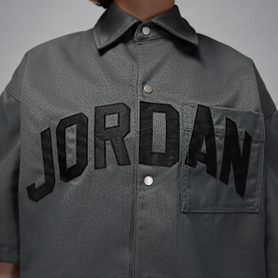 Sturdy, structured twill fabric and a loose fit keep this snap-front top ready for solo wear or a layered look. See how the "Jordan" patch lettering layers over the shirt's opening and chest pocket? It's proof we obsessed every detail.