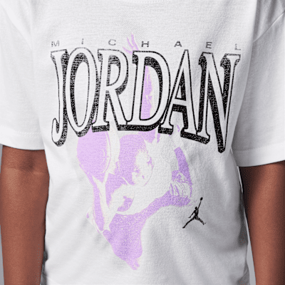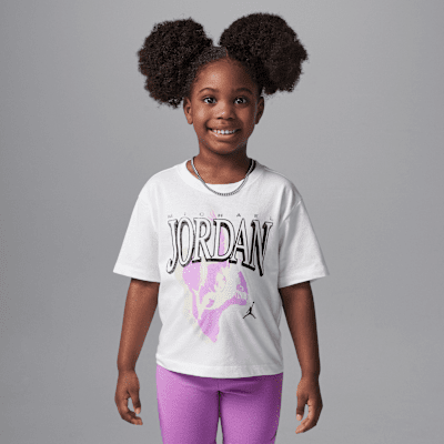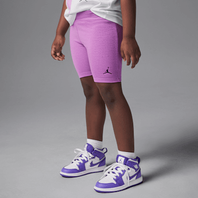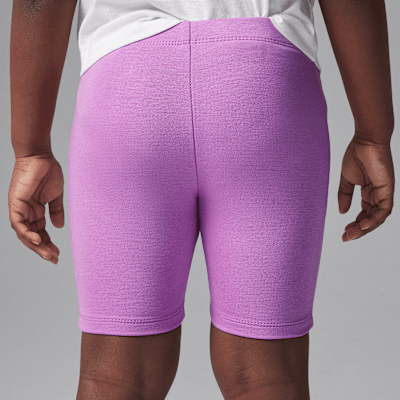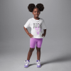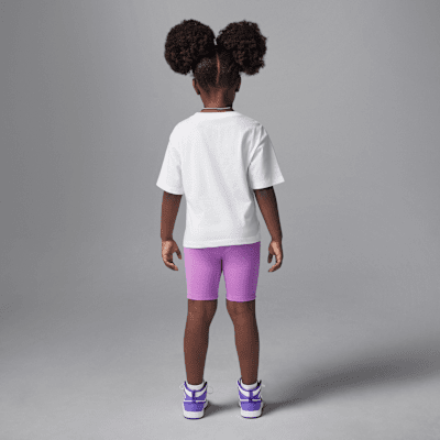 This coordinated 2-piece set is a modern look with throwback edge. The cotton jersey knit tee has a classic short sleeved silhouette with a tagless ribbed crewneck for easy wear. The bike shorts are made of soft, stretch blended cotton knit fabric enhanced with quick-drying, moisture-wicking Dri-FIT technology to help little ones stay cool and dry while they play.