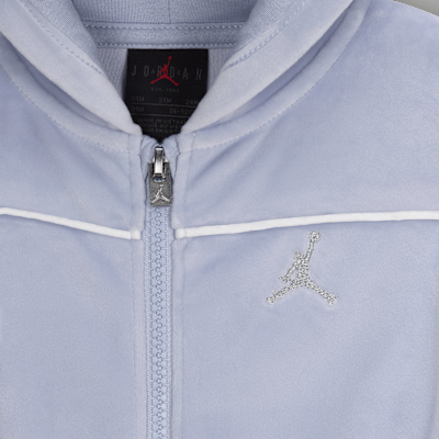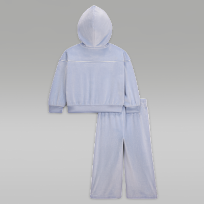 Featuring design inspired by the classic tracksuit, this two-piece set is made of velour fabric that feels soft and cozy, and will complement your little one's Designer Brand s. The hoodie has dropped shoulders that relax the fit, modern dolman sleeves, and a full-zip closure that makes layering over a tank or tee easy. The matching pants have a stretchy waistband for a comfy fit, and wide legs that allow for lots of movement and play.