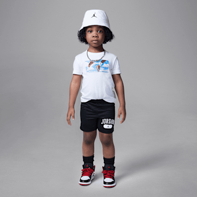 Made of breathable mesh fabric, these shorts are classic phys ed style with a Jumpman touch. They have a stretch waistband with drawcord to help kiddos get a fit they can move comfortably in whether running laps, busting out push-ups or any other activity.