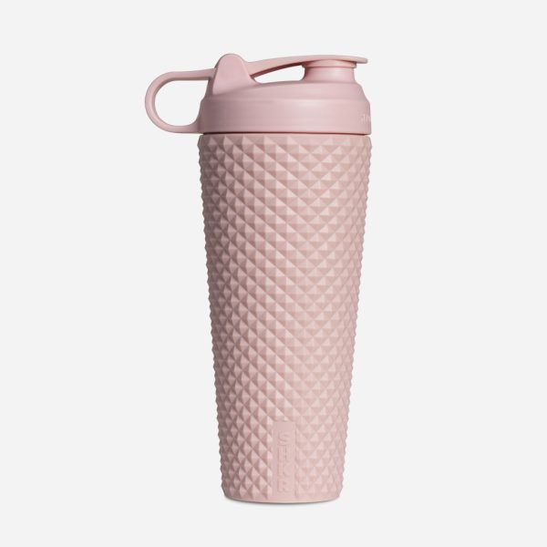 The Studded SHKR holds 24 oz and is double walled to reduce sweat and add insulation for your liquids. This shaker bottle comes with a Pro Lid. Tumbler Lid. and Straw. The included SHKR grate allows you to easily mix supplements into your water. The Studded SHKR is cup holder compatible. has a silicone base to protect your surfaces. and is BPA Free.