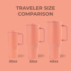 We took our viral 40oz Traveler and shrunk it down to 20oz. The 20oz Traveler is completely leakproof. cupholder compatible. and has a hygienic circular flip straw for easy sipping. The 20oz Traveler comes with a removable silicone boot that’s perfect for protecting your bottle and your surfaces. Perfect for both you and your mini me’s. this new size is a must-have in your hydration lineup.