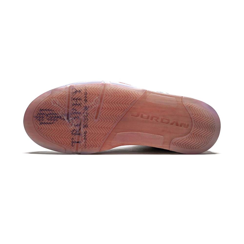 The Trophy Room x Designer Brand 5 Retro sneaker draws inspiration from the real-life trophy room in the Designer Brand family home. This ‘Ice Blue’ rendition is replete with a rich suede upper, hits of University Red, Sail and a metallic gold lace lock. Each lateral heel is embroidered with metallic gold numerals—’23’ and ‘5’—the jersey numbers worn by MJ and his son, Marcus. Below, the sneaker’s translucent rubber sole displays a wood-grain motif to reference the court-style flooring in MJ’s trophy room.