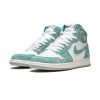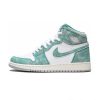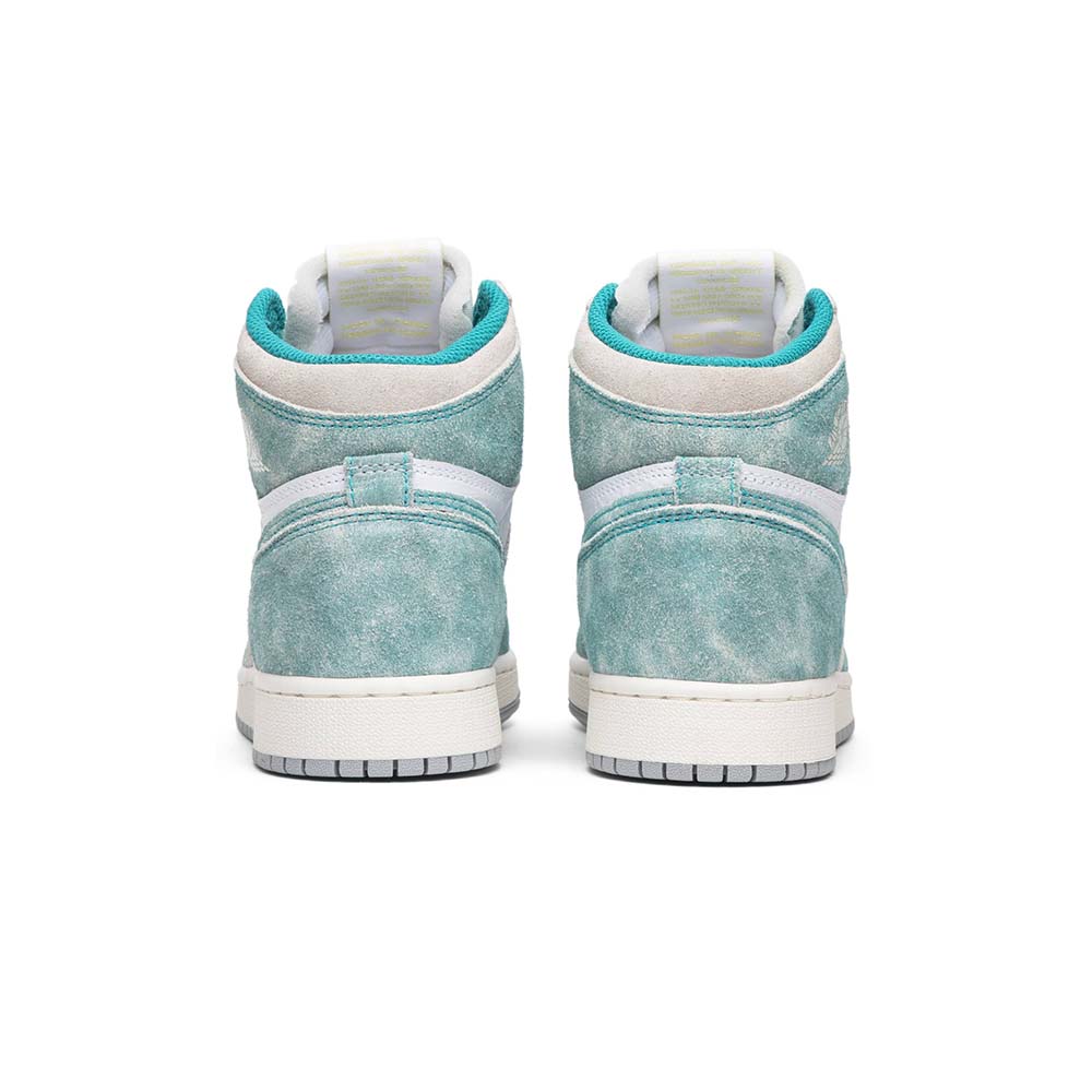 The Designer Brand 1 High GS “Turbo Green” is the kids’ grade school sizing for the popular colorway released in 2019. A distressed treatment was used on the leather of the upper to create a vintage effect, and the kids’ Designer Brand 1 has a teal and white color scheme with hints of purple and yellow to pay homage to the Charlotte Hornets, the NBA team that hosted the 2019 NBA All-Star Game. A cream midsole helps continue the vintage aesthetic, and each pair is completed with a grey outsole. The youth Designer Brand 1 High GS “Turbo Green” released on February 15, 2019.